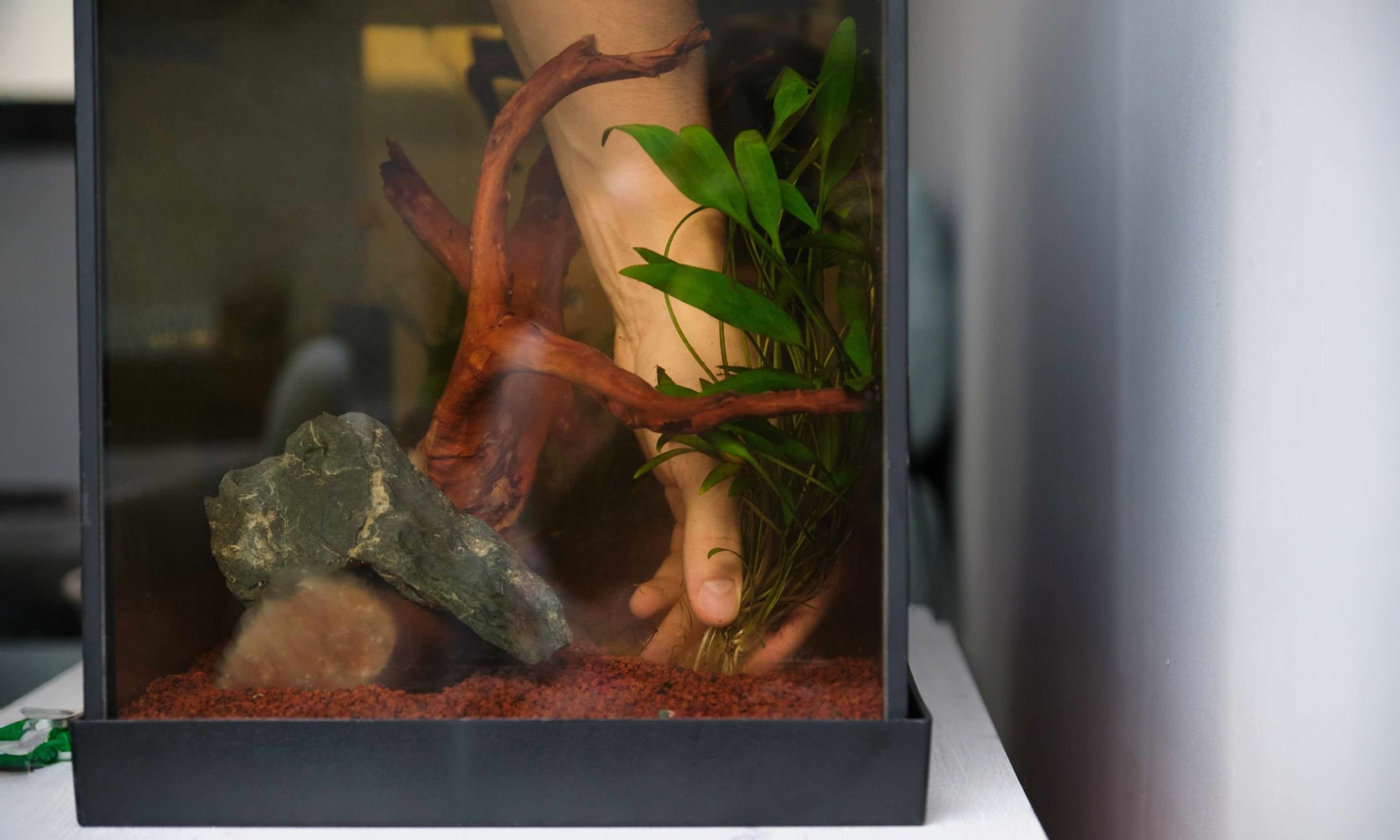 水草顏色不用太多,少量紅草點綴就很加分。