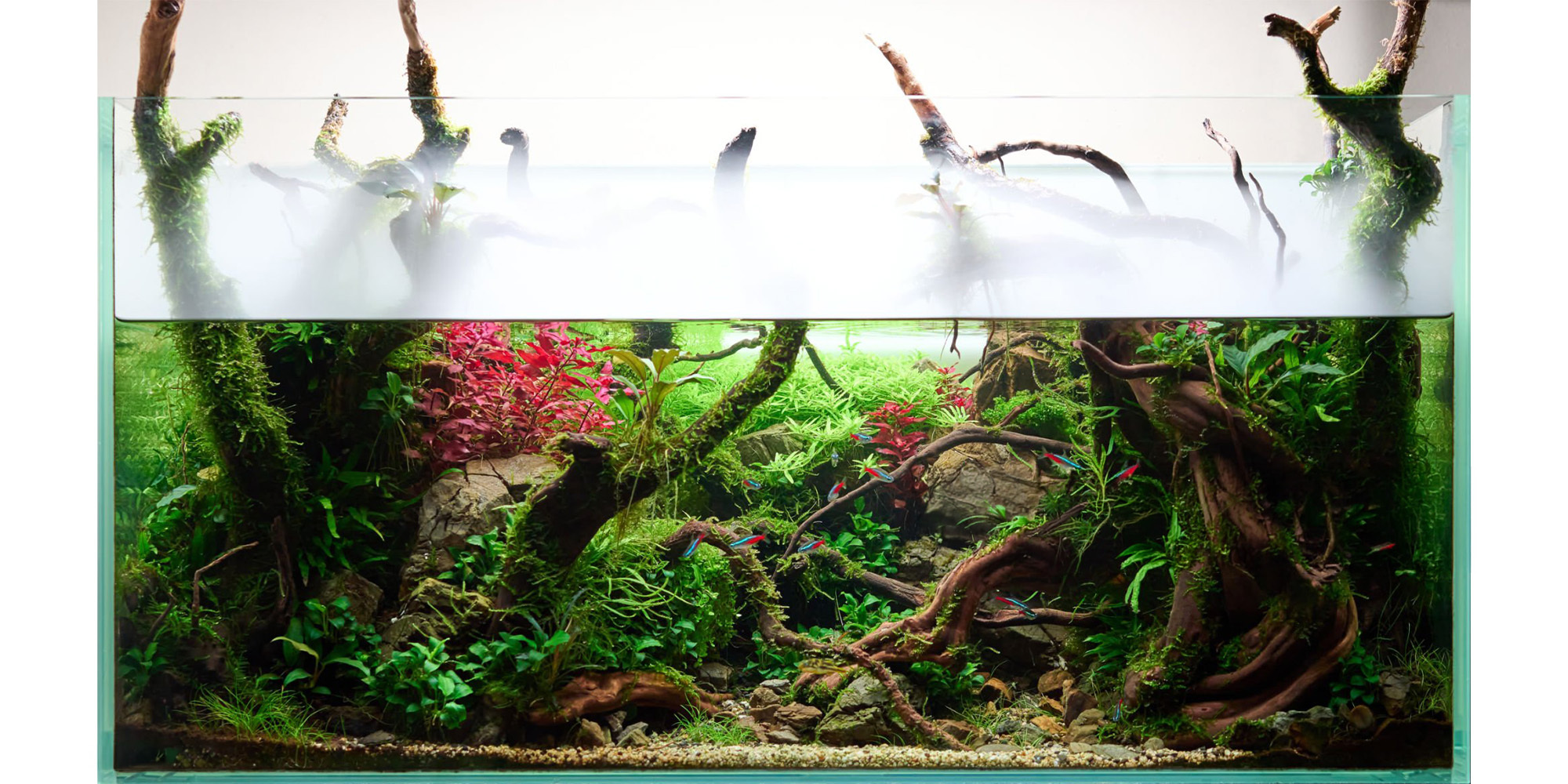 屏風缸(長薄缸) 寬度極窄但長度較長。適合當作空間隔間或玄關裝飾,視覺張力強,但因為水體薄,造景深度受限,且水流循環需要更精密的配置。