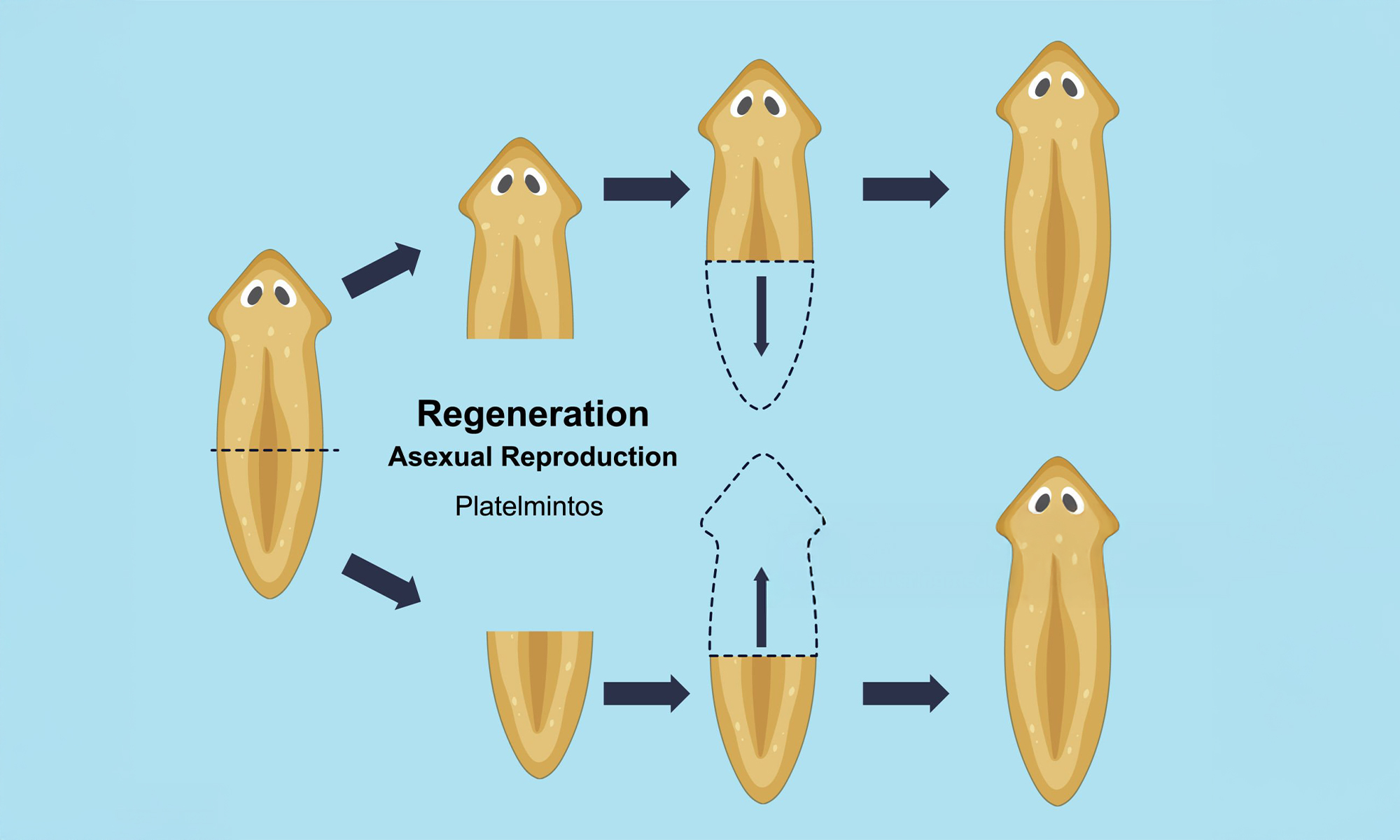 渦蟲有一個讓人頭痛的特性:牠們能無性繁殖。甚至只要把牠分成小片,每一小片都可能重新長出新個體!這也讓直接去「壓」或「切斷」反而變成幫牠們複製的危險動作。