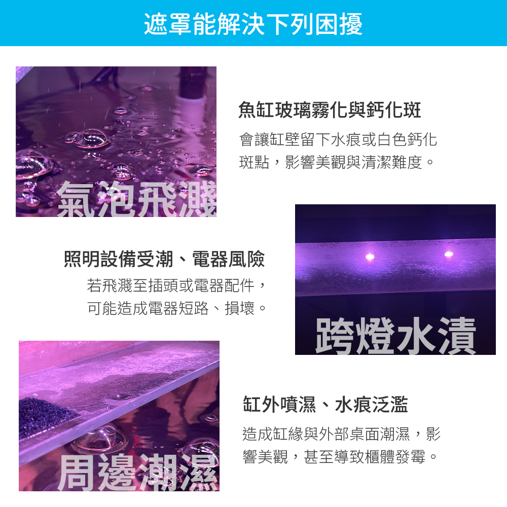 打氣產生的水花常使缸邊與燈具潮濕產生水垢