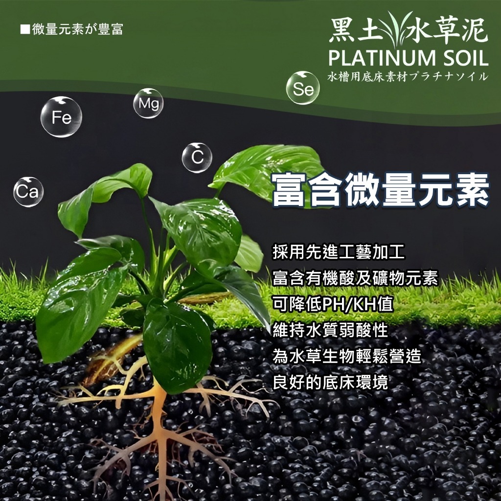 此款黑土能自然調整水質,打造弱酸性、低硬度的環境