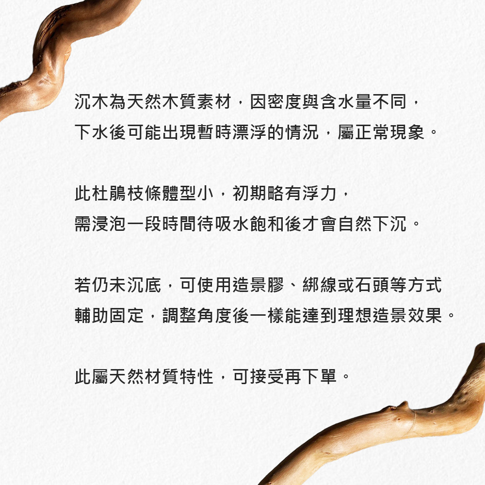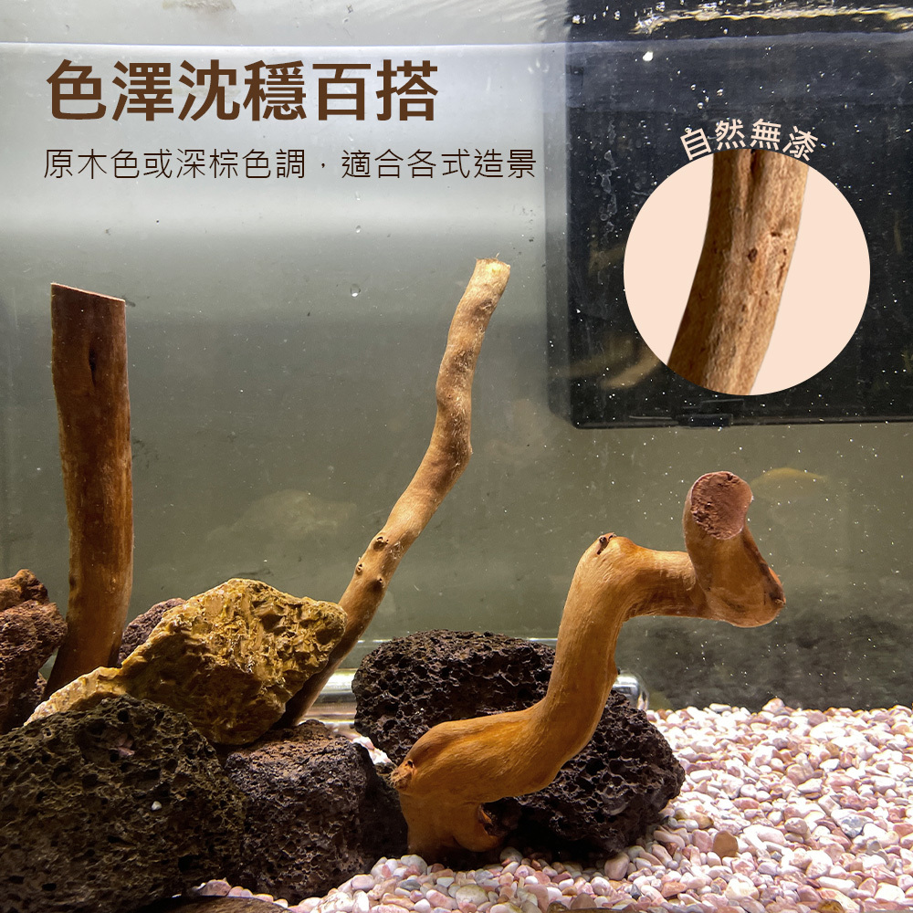 杜鵑枝條放入魚缸後能營造粗獷又自然的風格