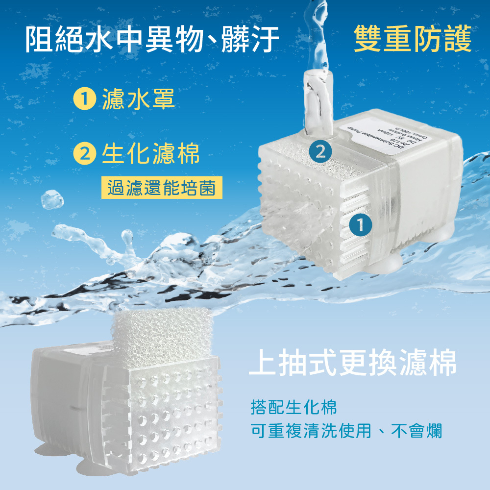 🔹流水過濾二合一,活水增氧美觀