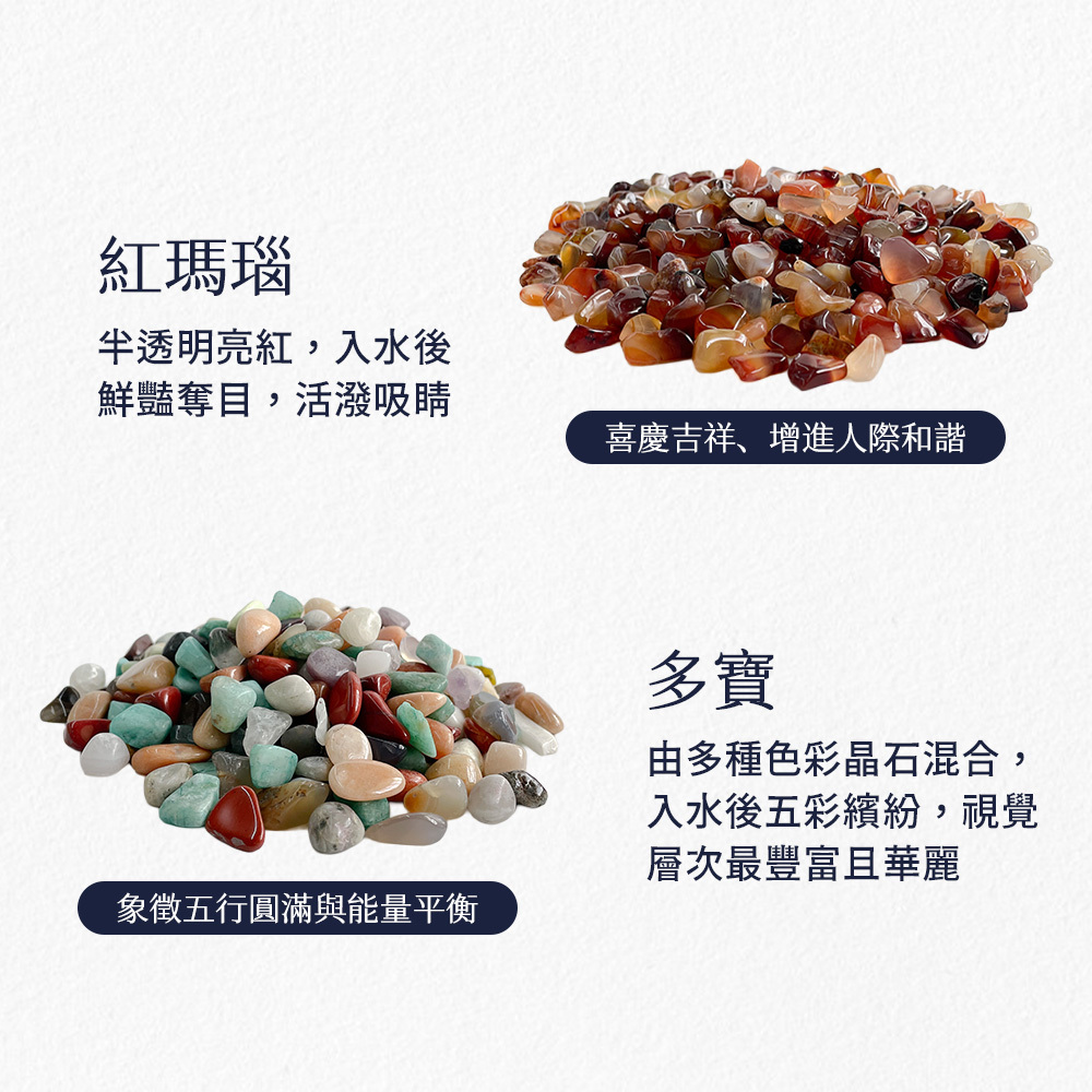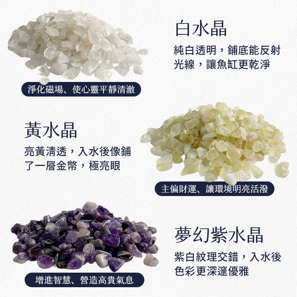 採用天然水晶碎石製成,色澤透亮自然