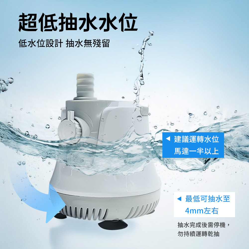 進水設計可吸水至接近缸底的超低水位