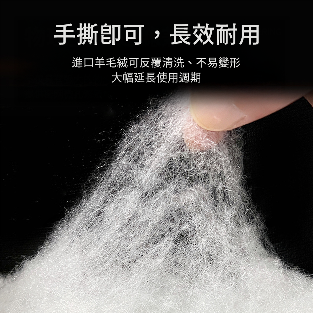 進口羊毛絨濾棉選用高密度聚脂纖維製成