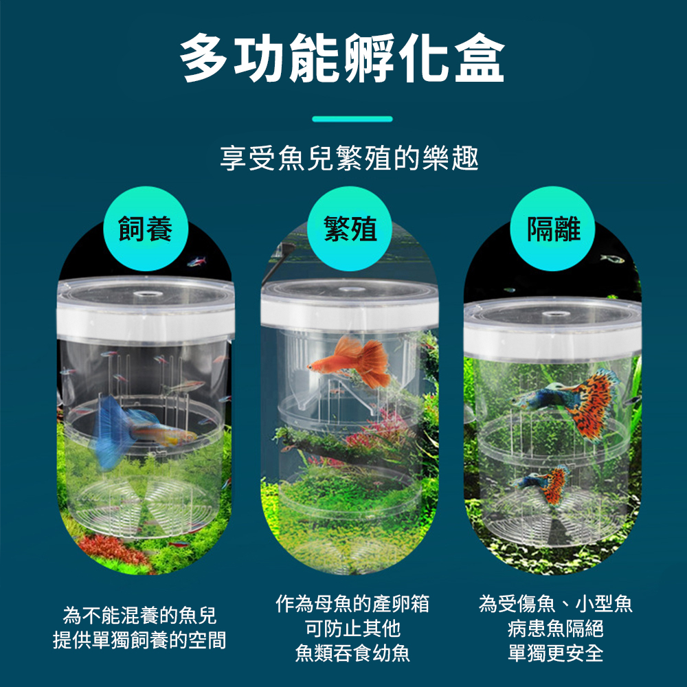 繁殖盒採懸浮固定設計,可直接掛於魚缸內側