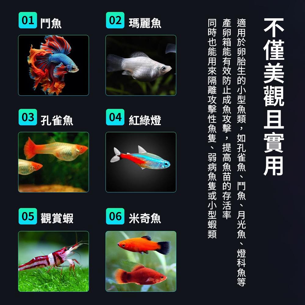 專為孔雀魚、月光魚等卵胎生魚種設計