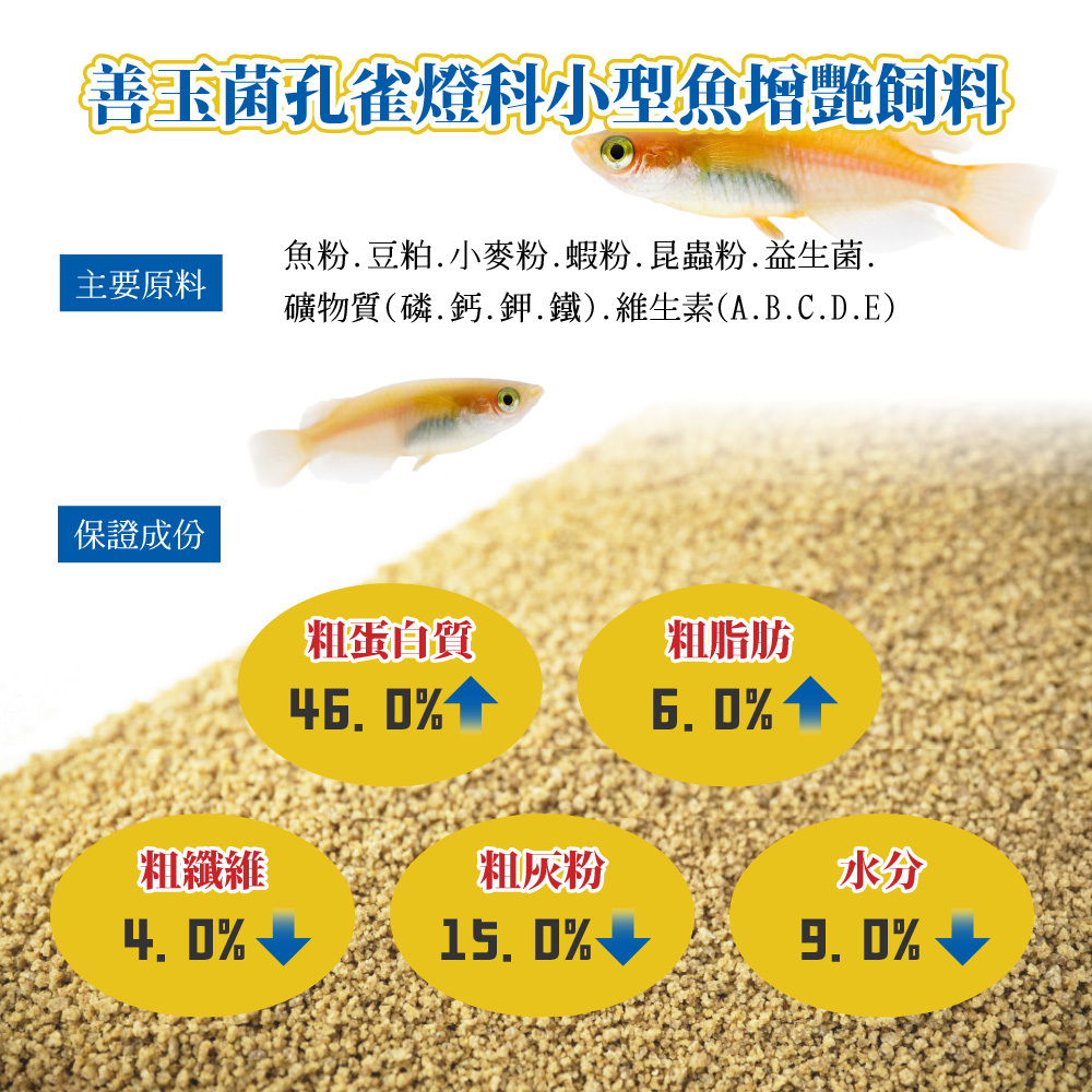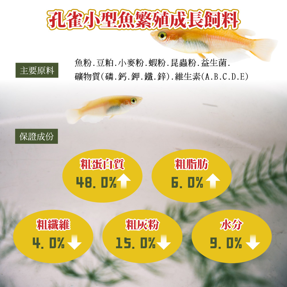 🔹 高蛋白滿足小型魚成長