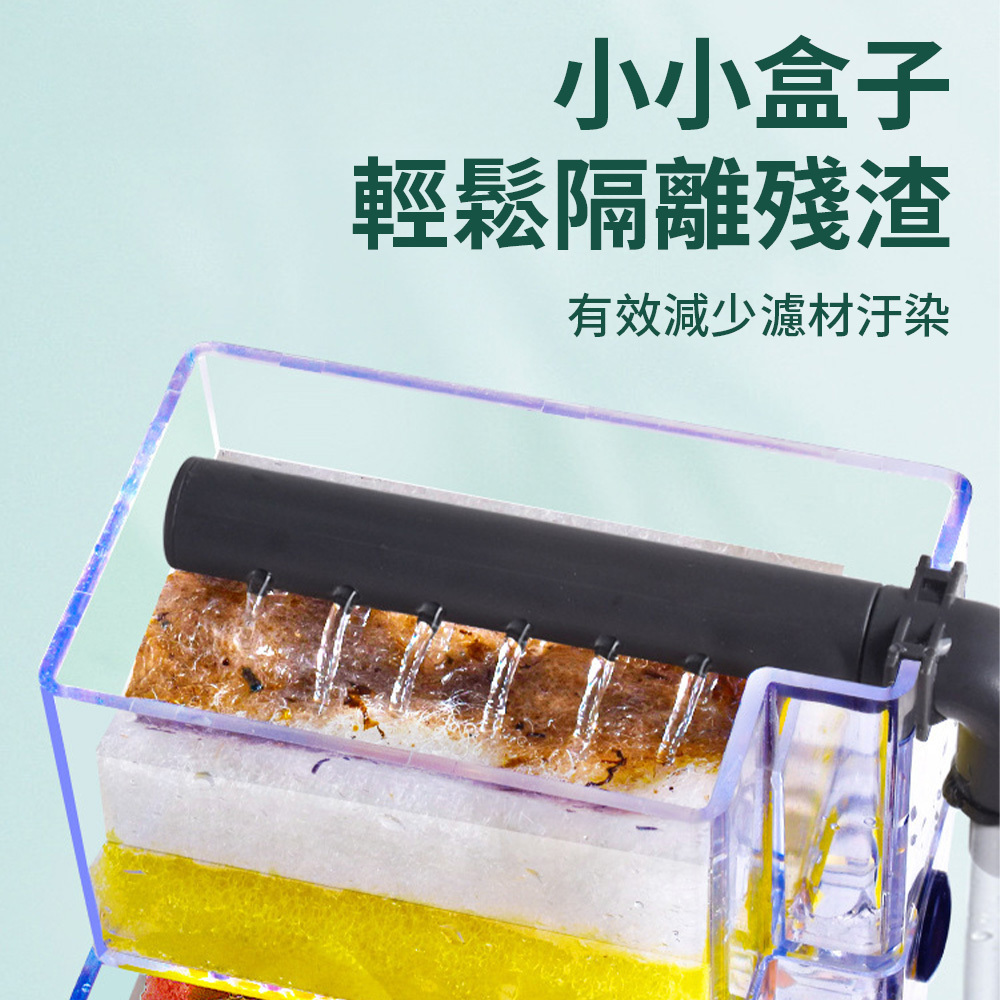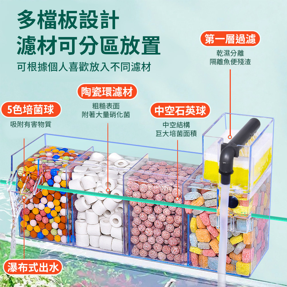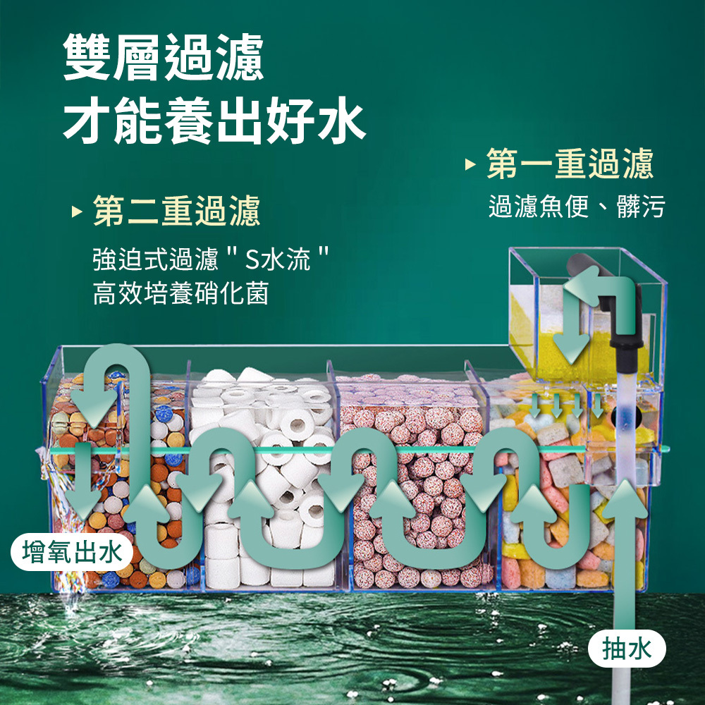 馬達抽上來的水流必須完整通過濾材後才回到魚缸