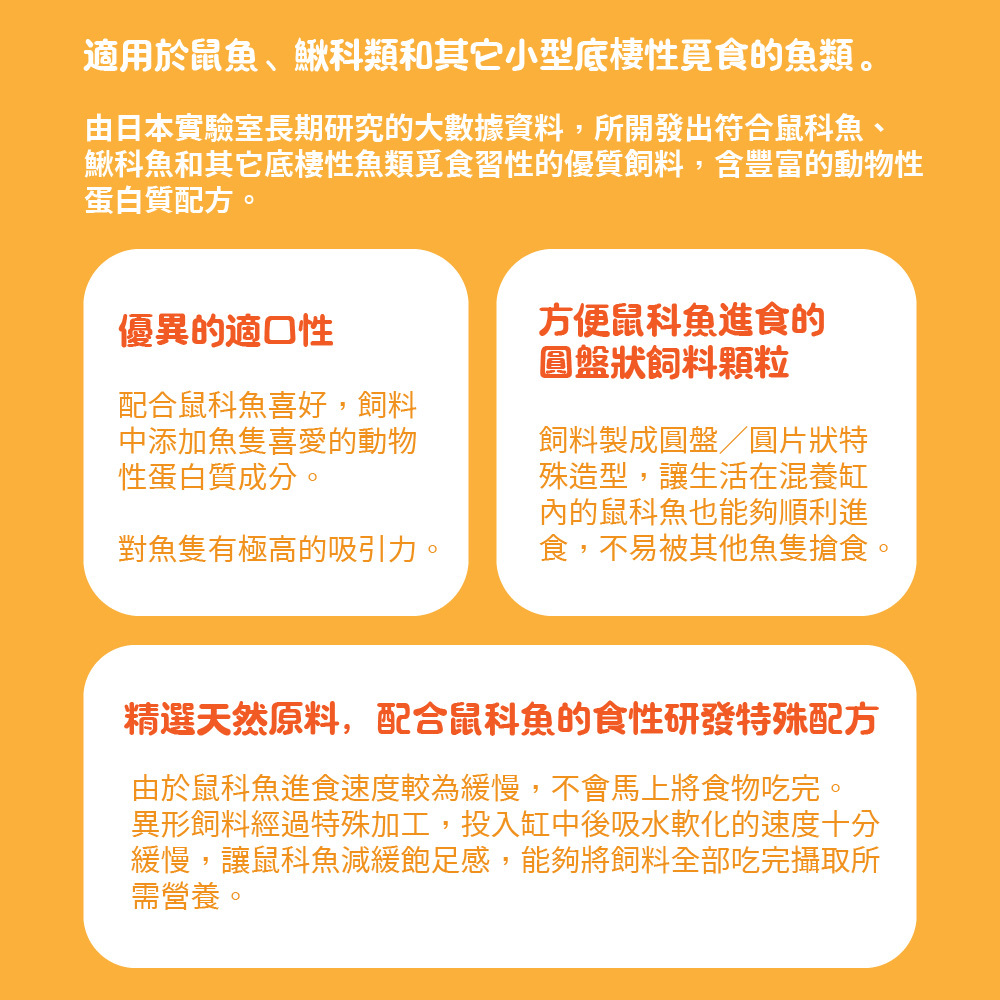 高夠力鼠科魚飼料以高比例動物性蛋白為基礎