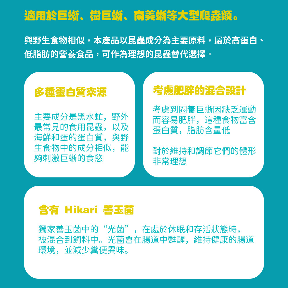 高蛋白低脂肪配方專為巨蜥及肉食性蜥蜴設計