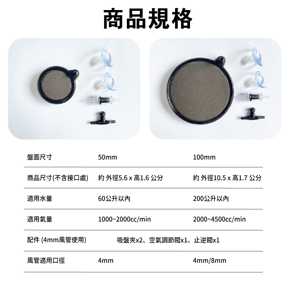 提供50mm與100mm兩種規格,適用不同水量需求