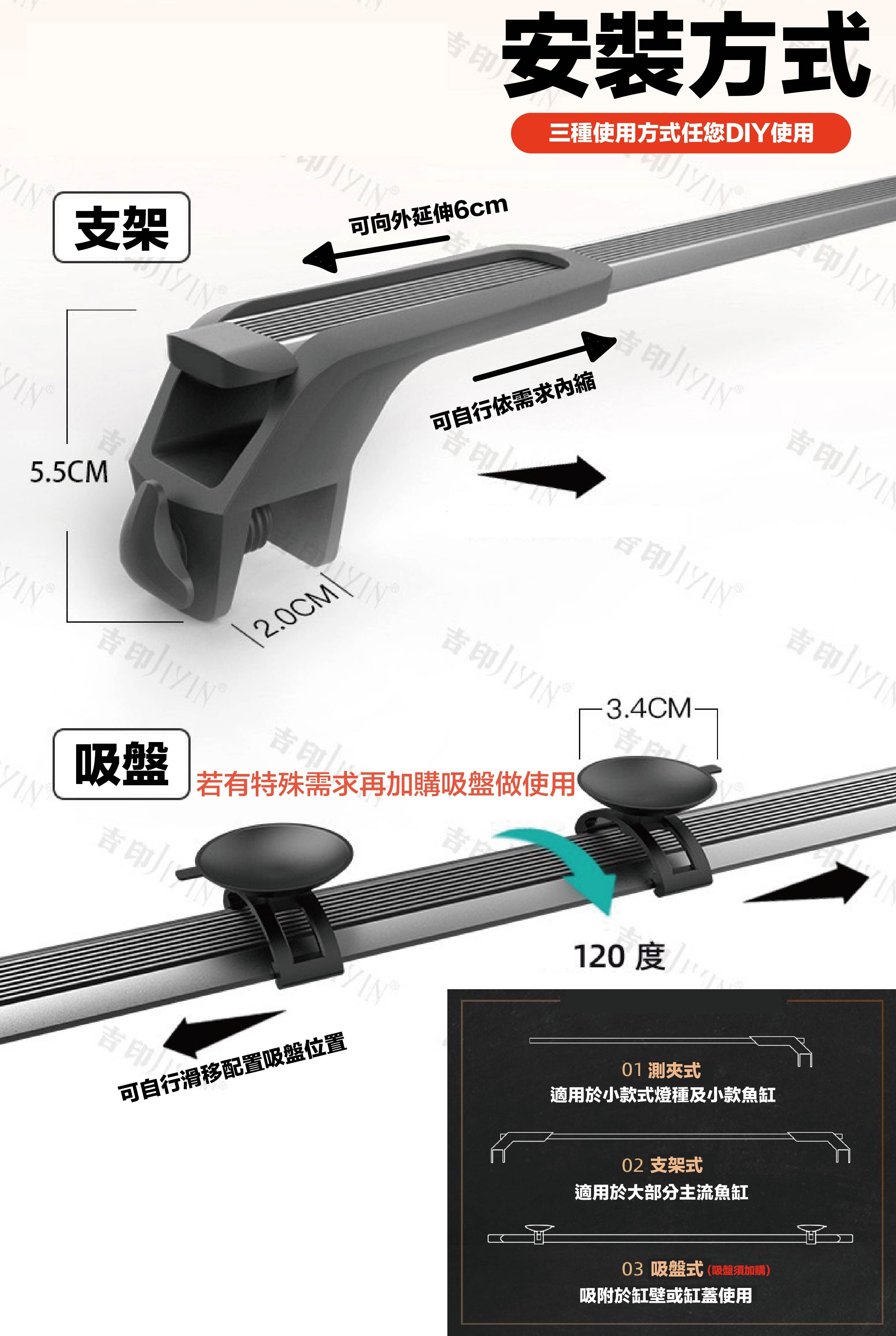 ☀️支架式+吸盤式:(因燈太長.重,無法側夾)