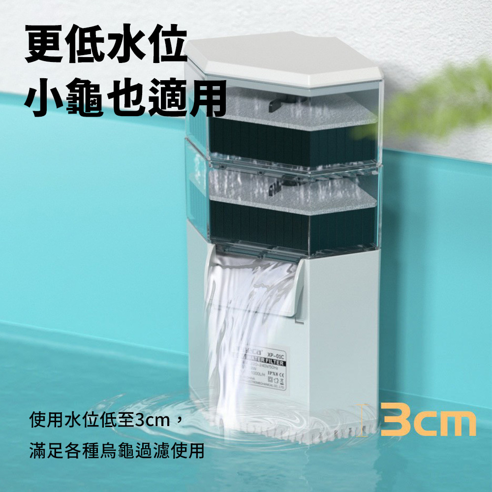 3cm超低水位即可正常運行,專為水龜、兩棲缸設計