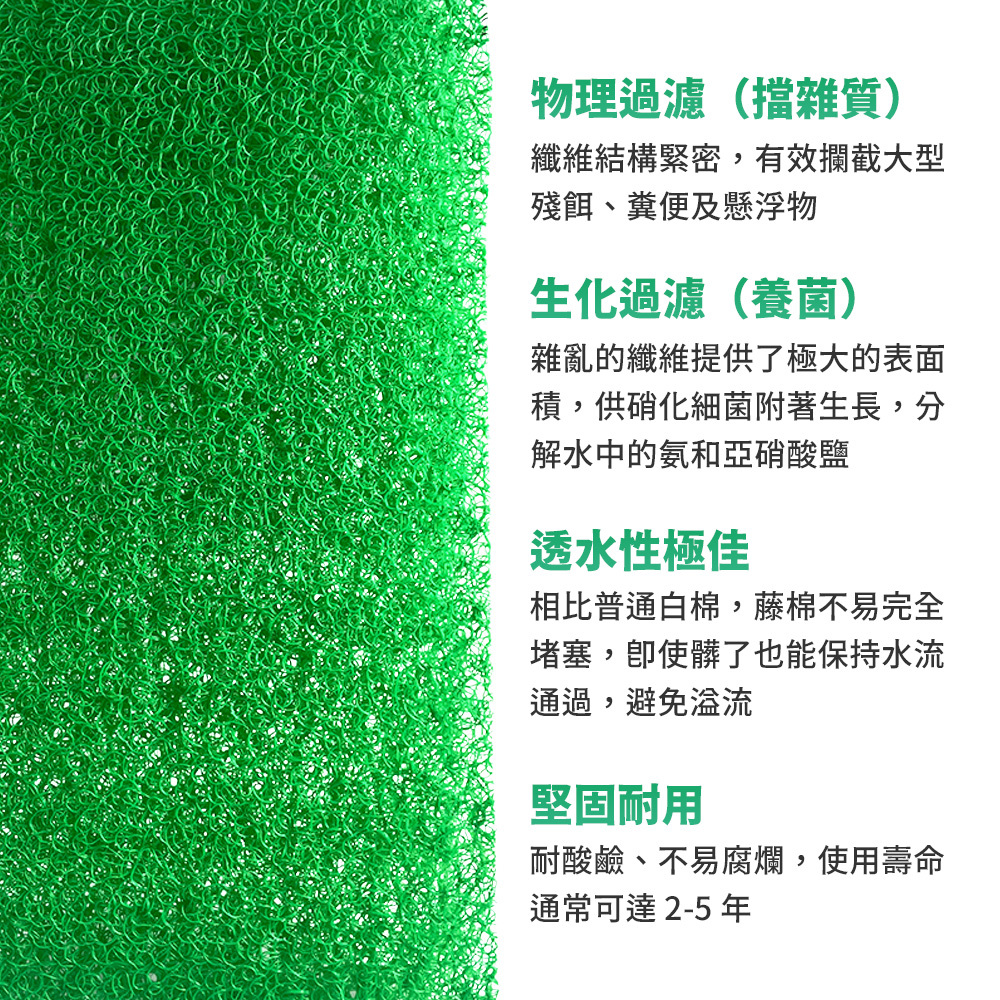 除了培菌功能外,藤棉亦可攔截較大顆粒雜質
