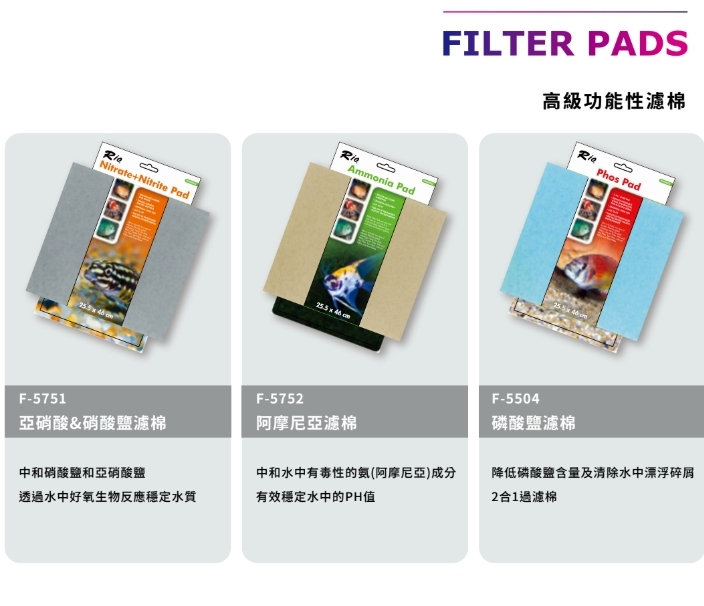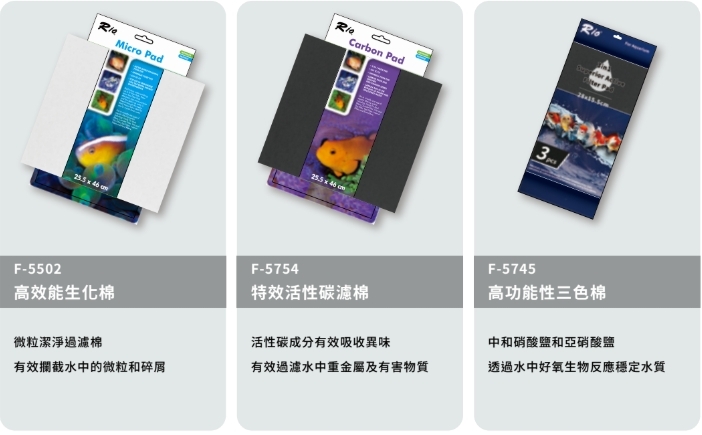 共六款濾棉對應不同水質需求