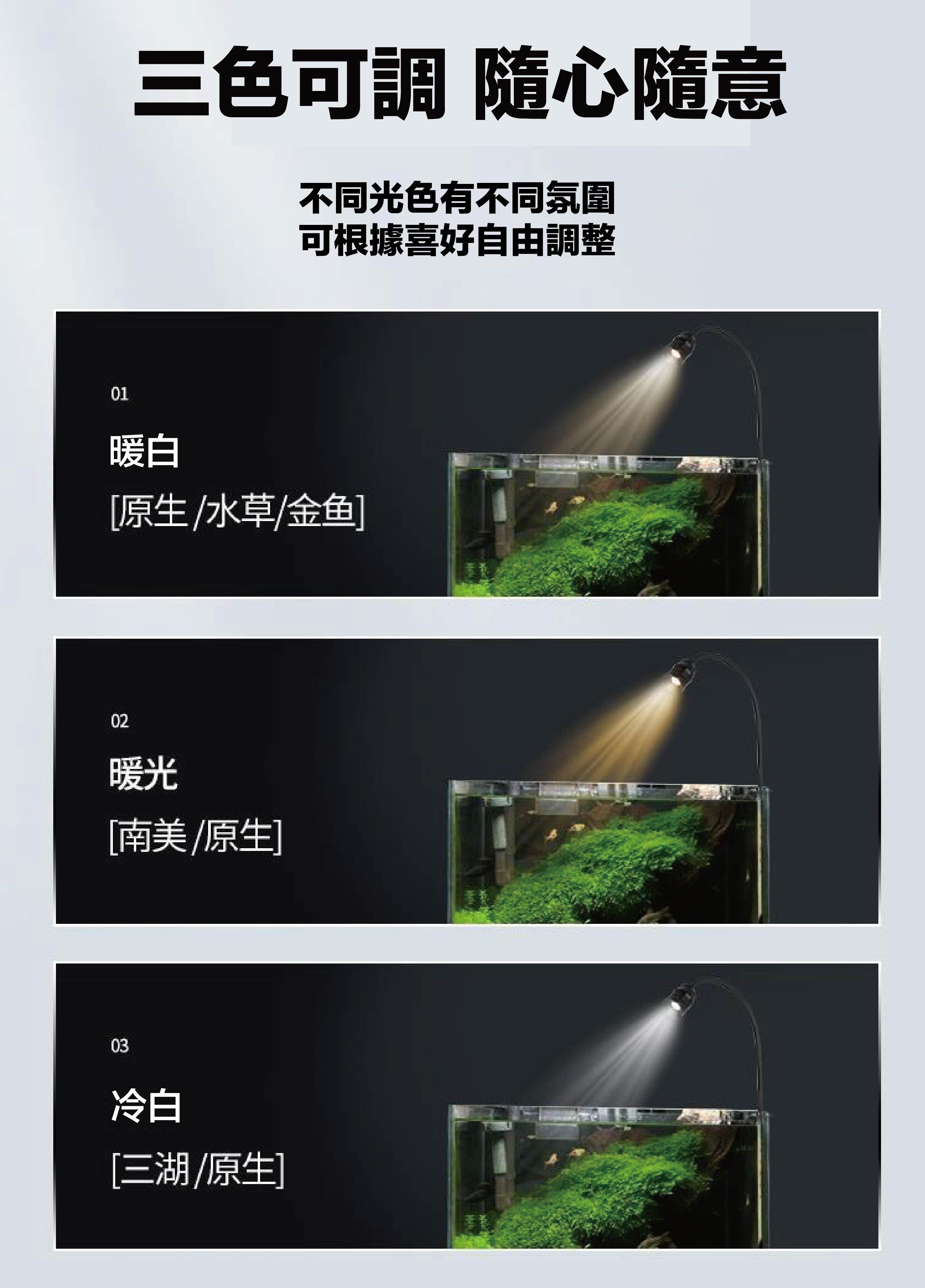 想讓魚缸氣氛溫潤柔和或明亮通透,都能輕鬆達成