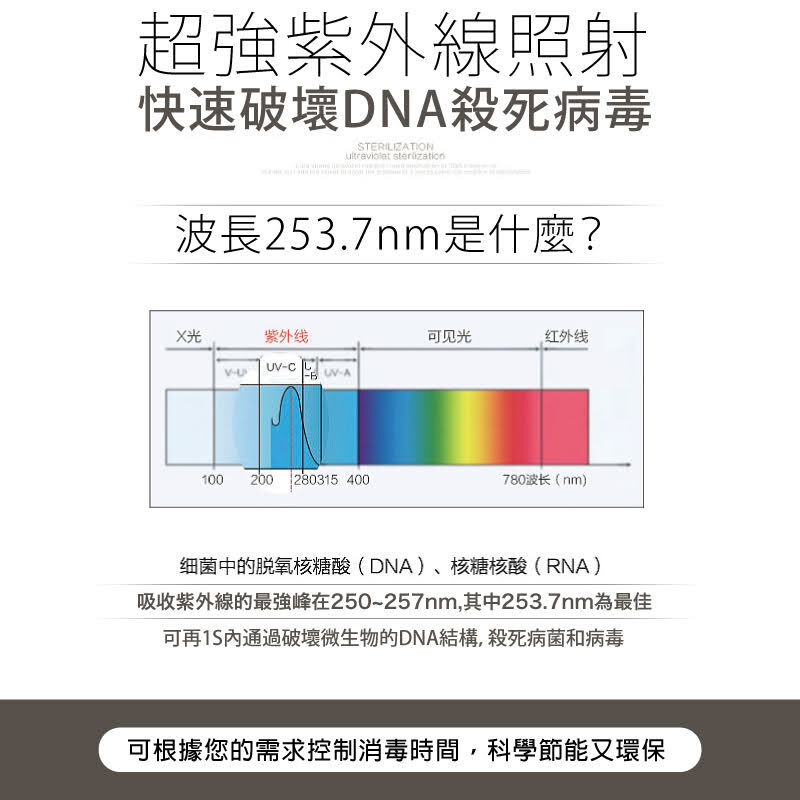 紫外線能有效破壞細菌DNA,達到快速滅菌效果