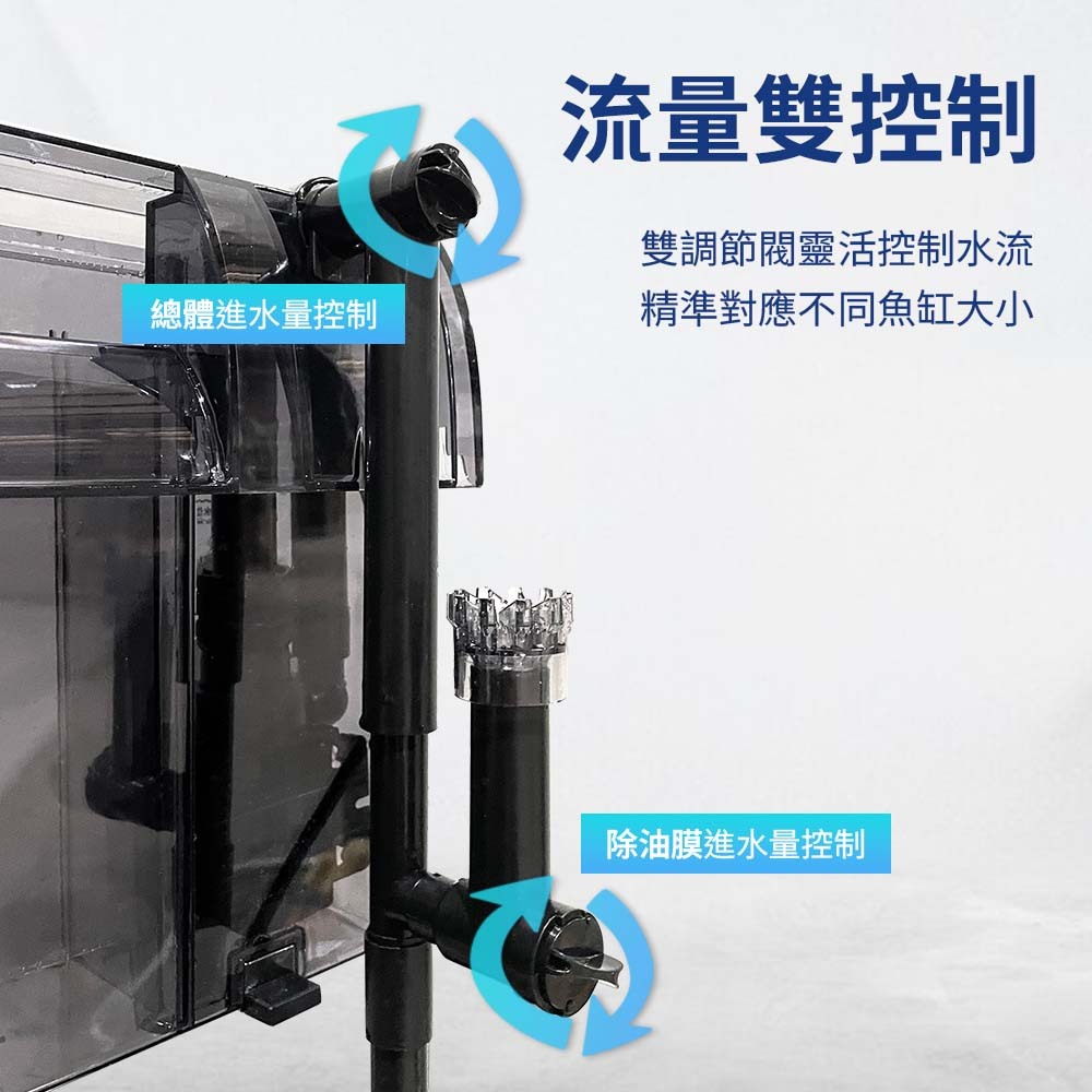 依據魚缸大小或水流需求輕鬆調整吸水量